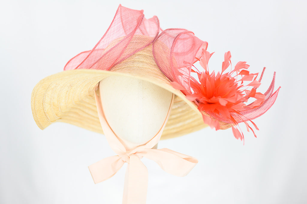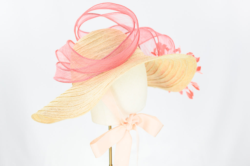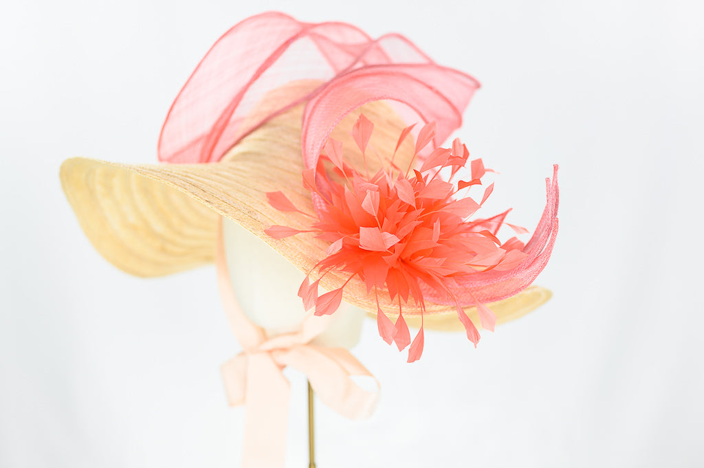 Using the combination of a sinamany & raffia capelline with sinamay waves and a beautiful here a stunning piece to make a statement at a wedding garden party or simply walking in life looking fabulous