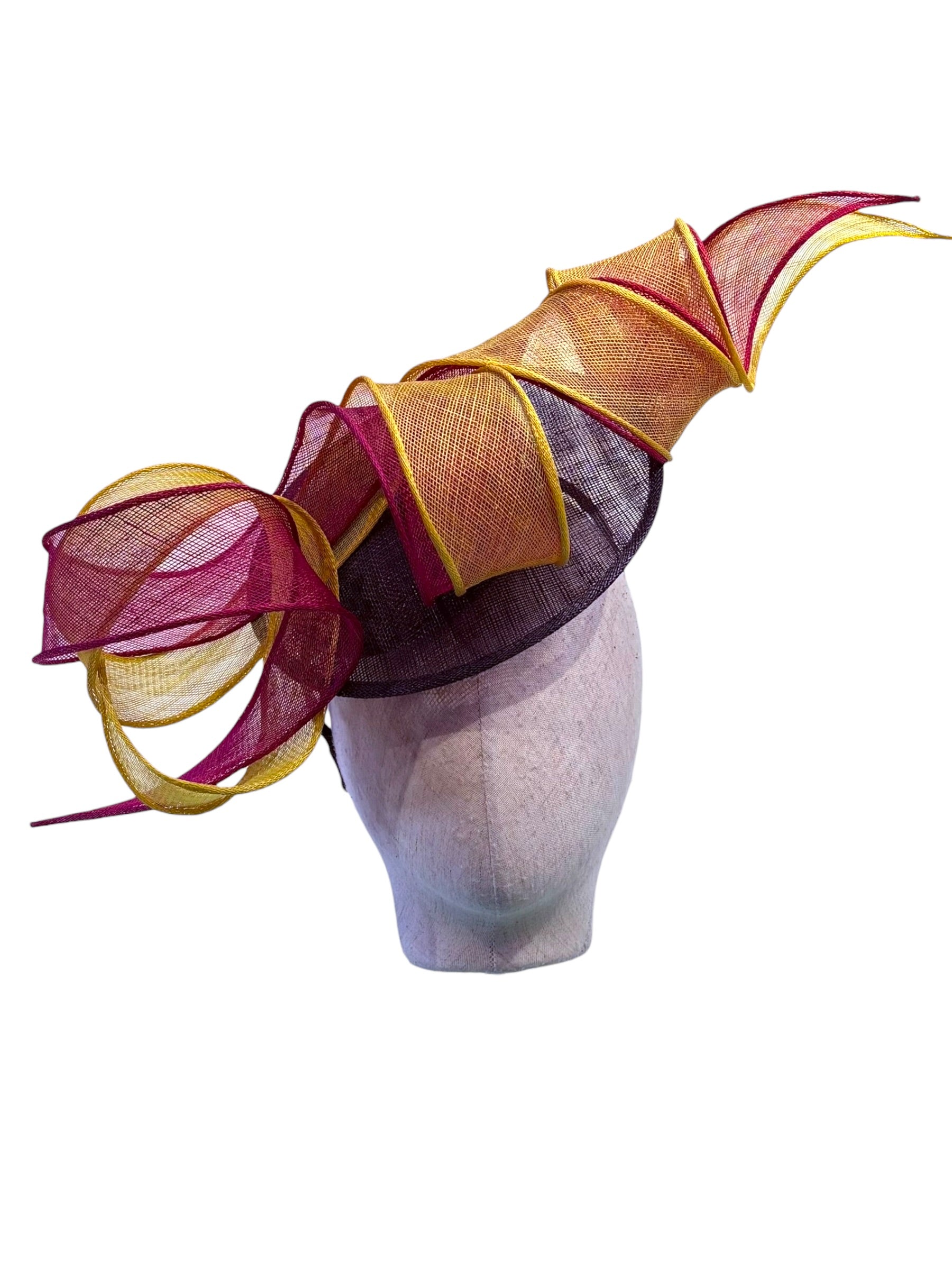 A very Minimal W&B Fascinator its all in sinamay its modern contemporary and limitless
