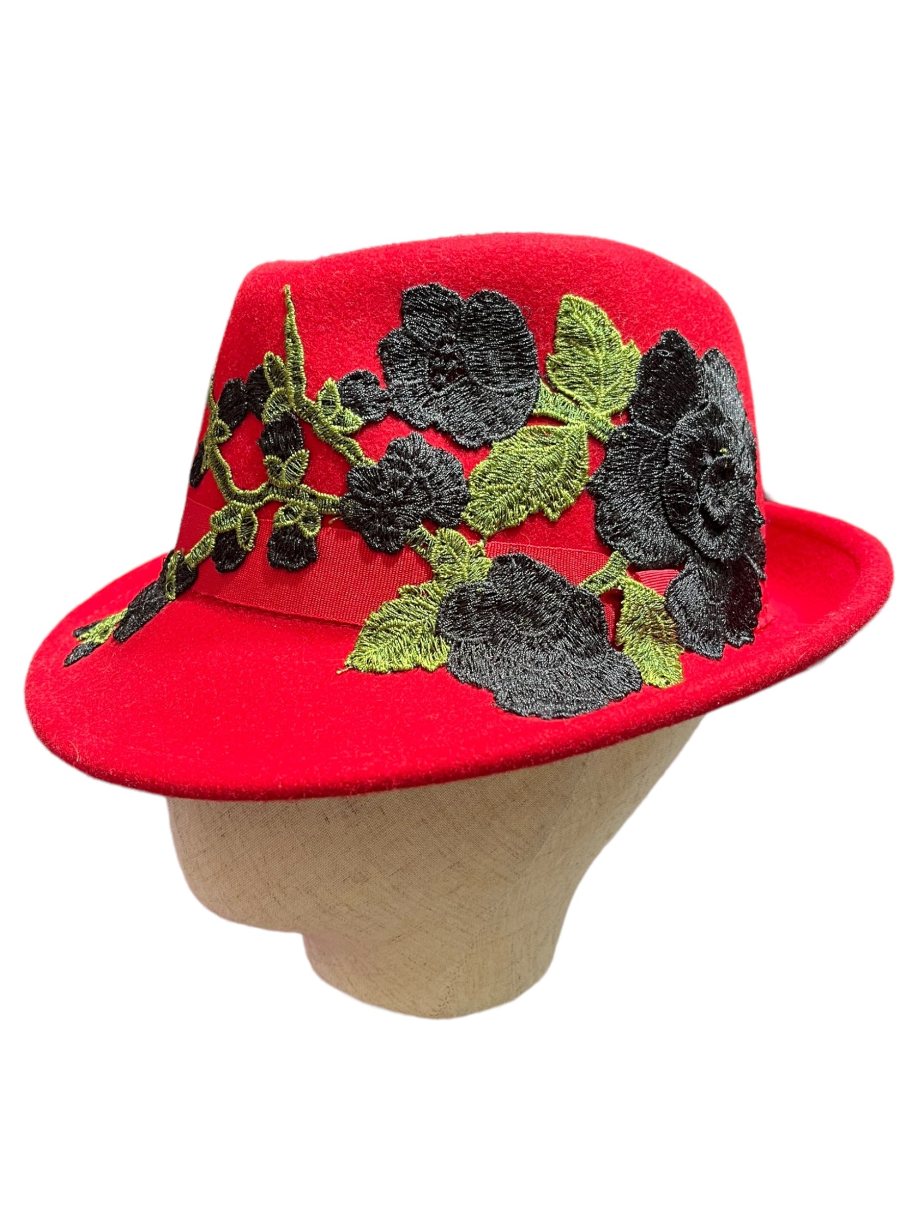A classic W&B the Woody love trilby made in merino wool felt and with a floral silk embroidery