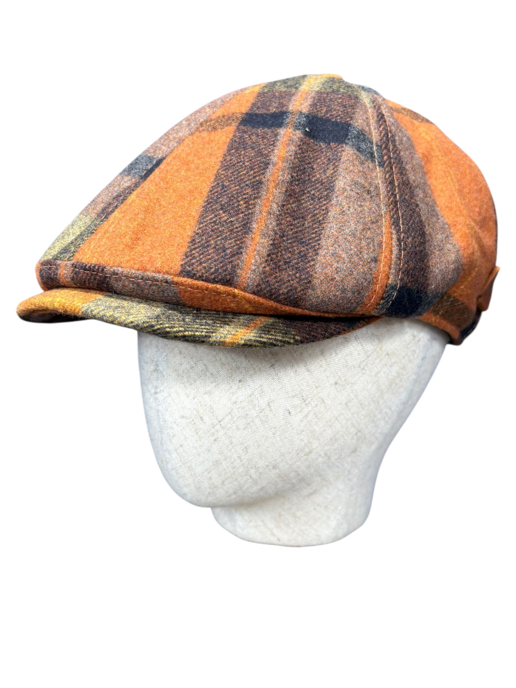 A modern version of 1830s style cabbie cap created with 100% wool tweed and check tartans, it’s one size with an elasticated back for comfort.