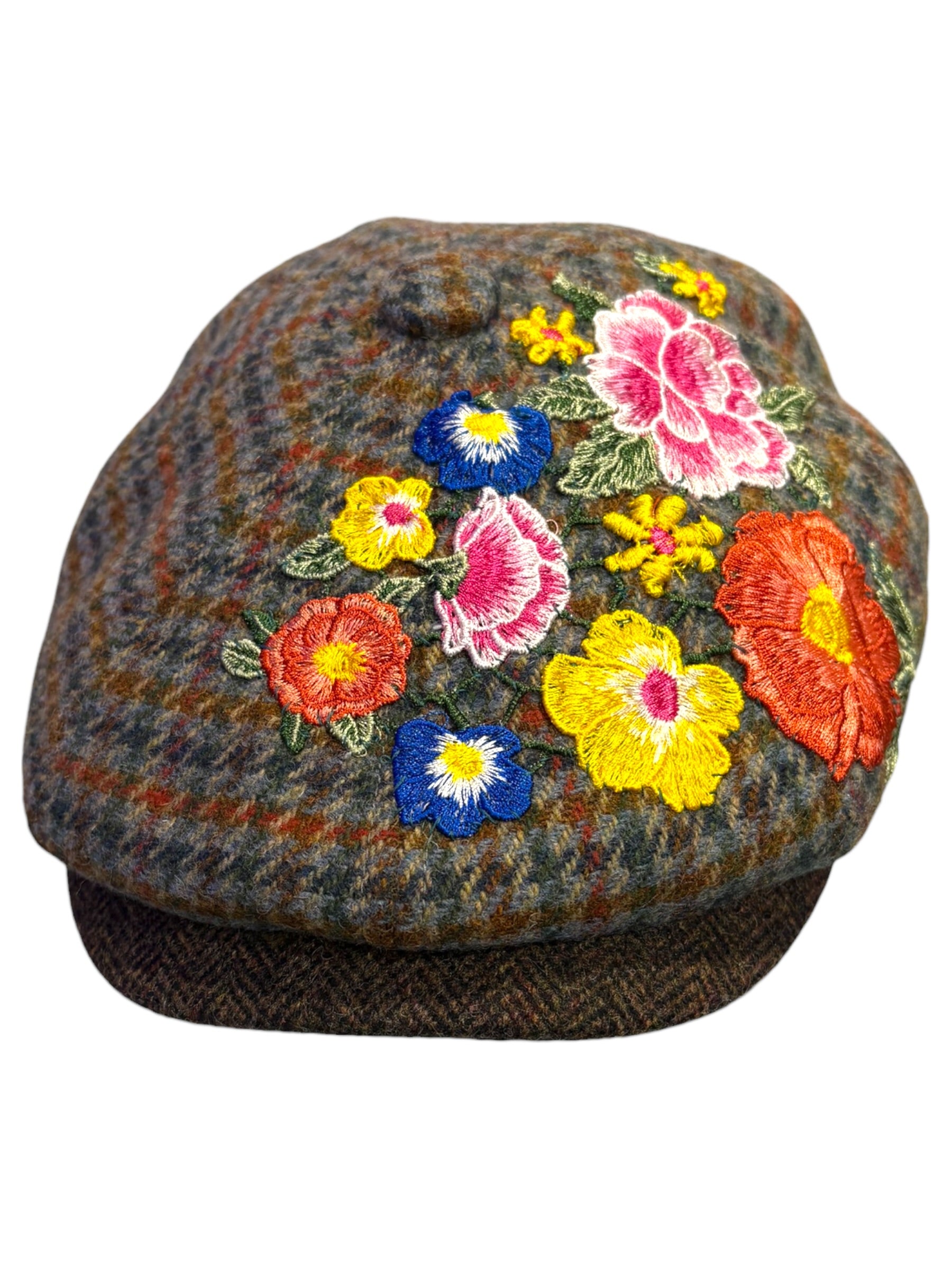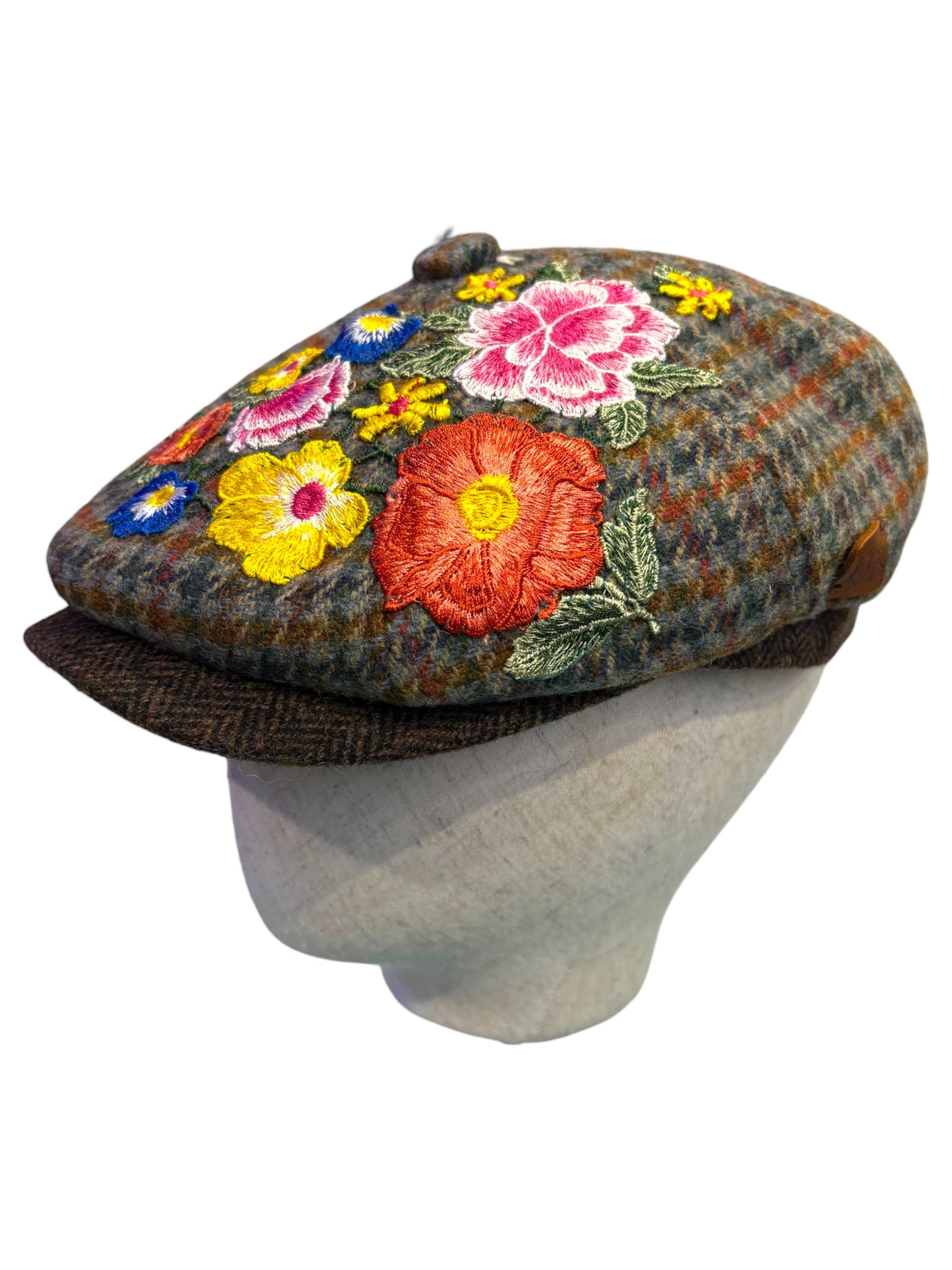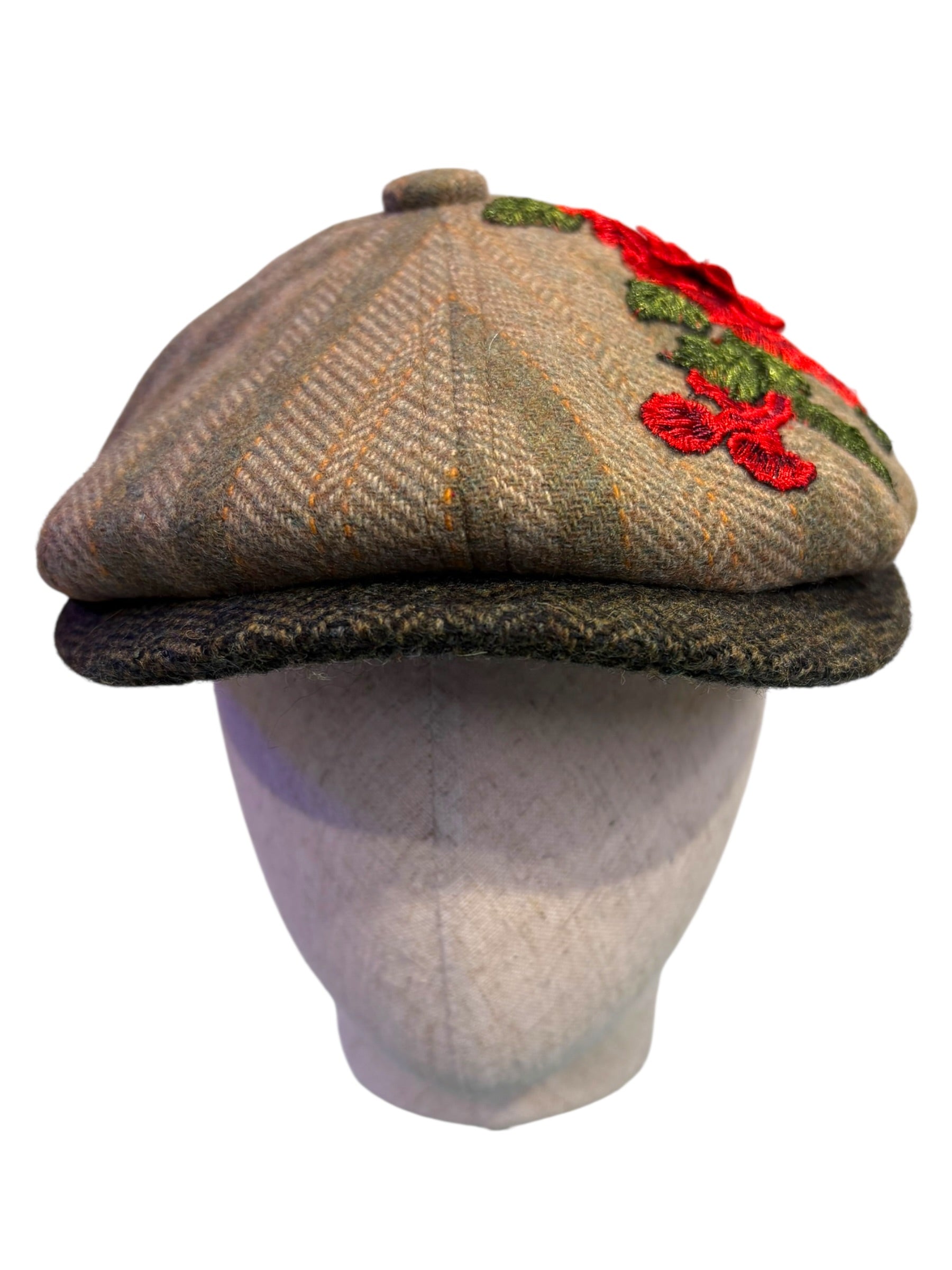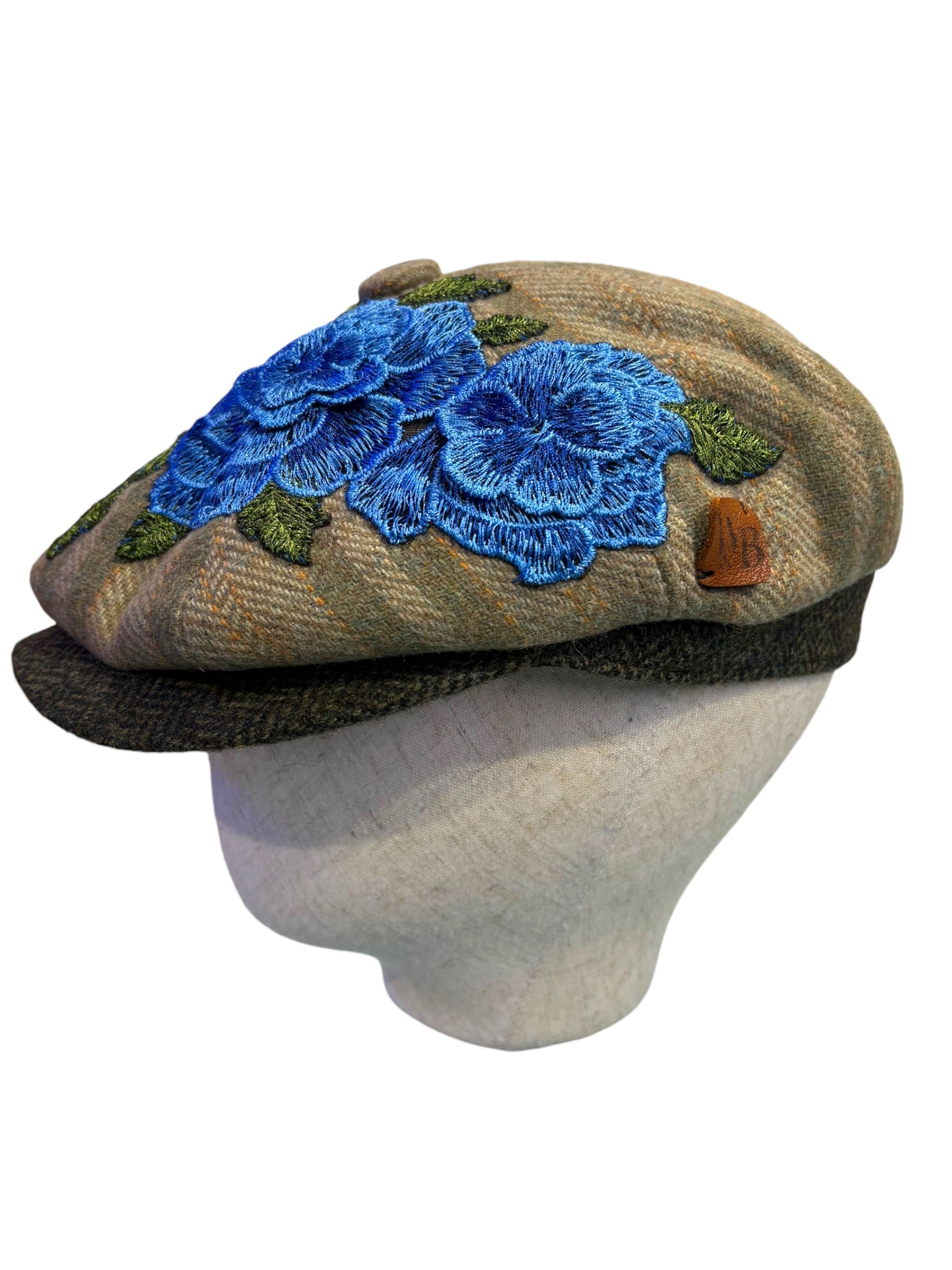 A W&B limited Edition Baker Boy Cap made in 100% tweed or tartan scottish wool with a French Embroidery