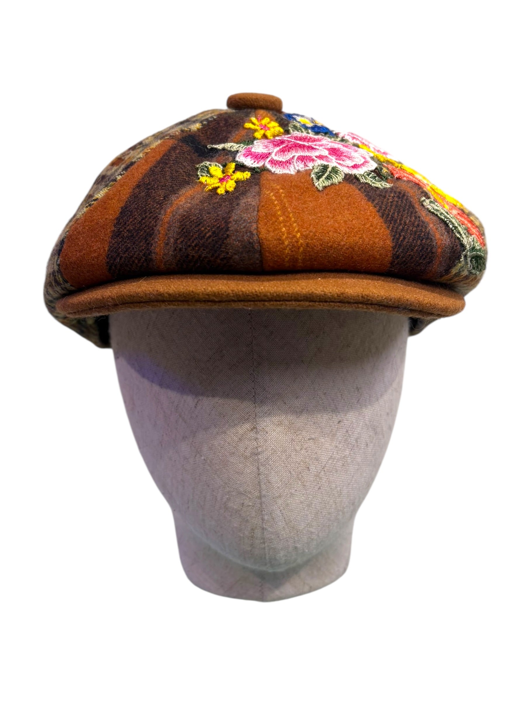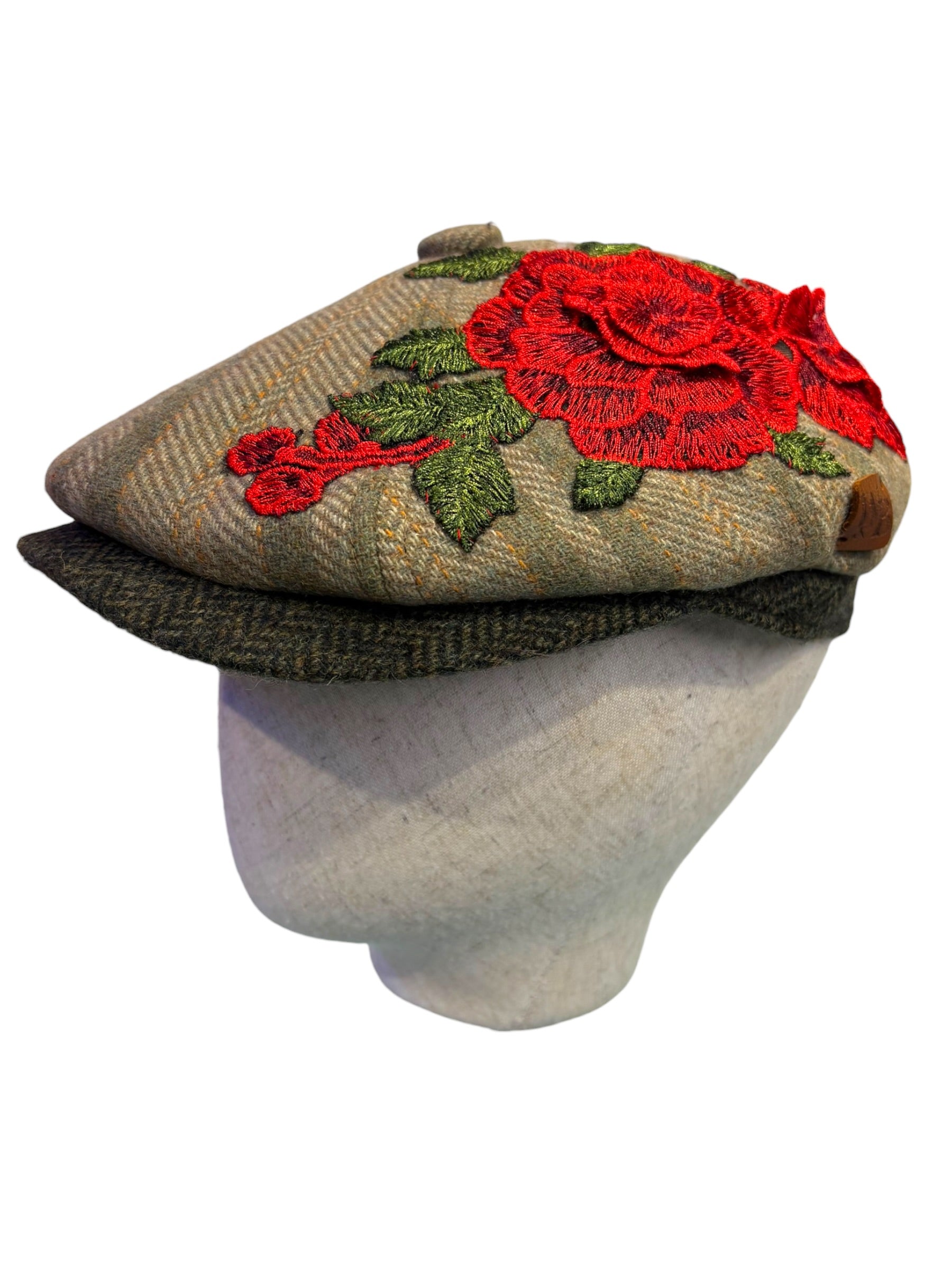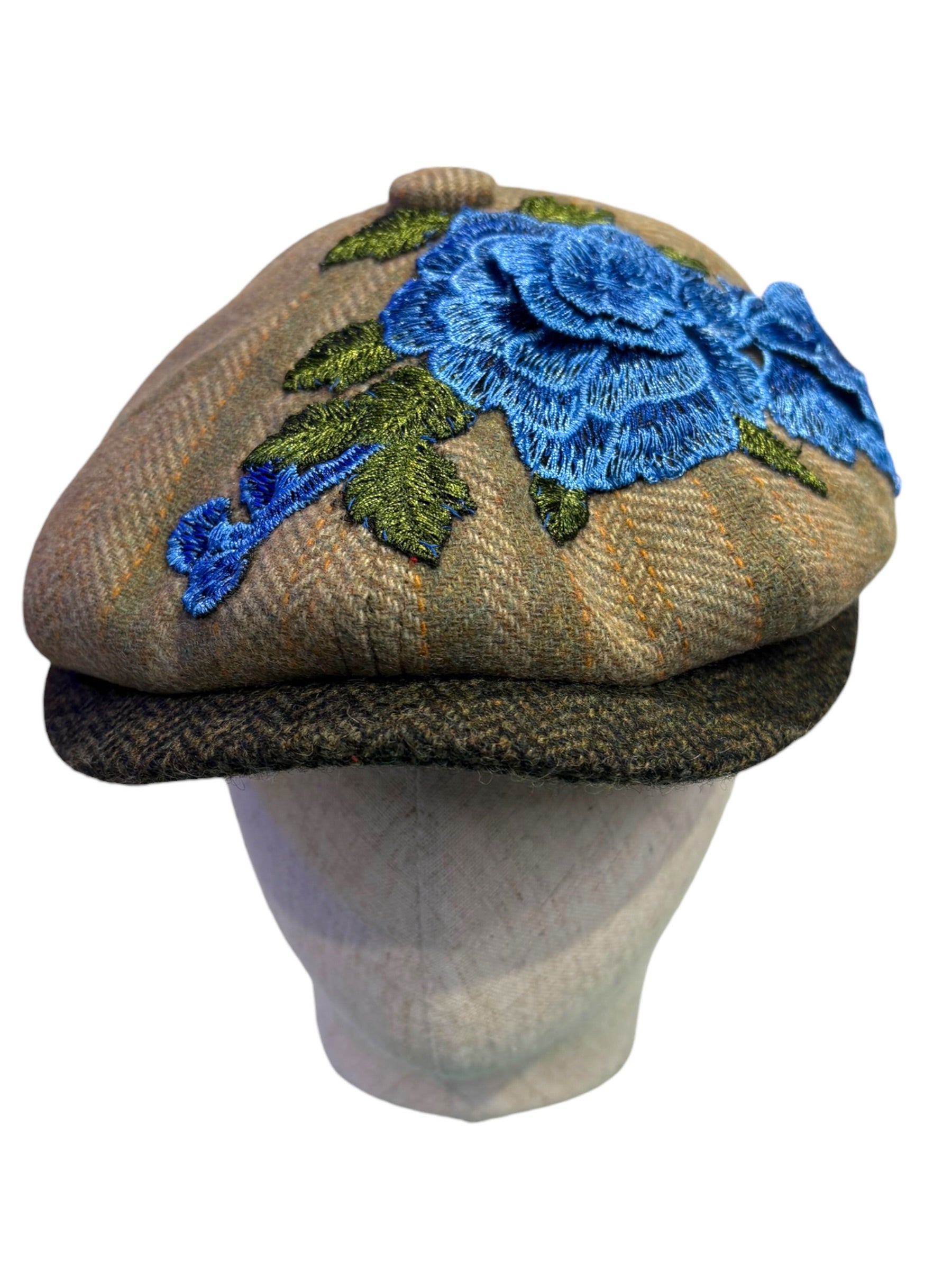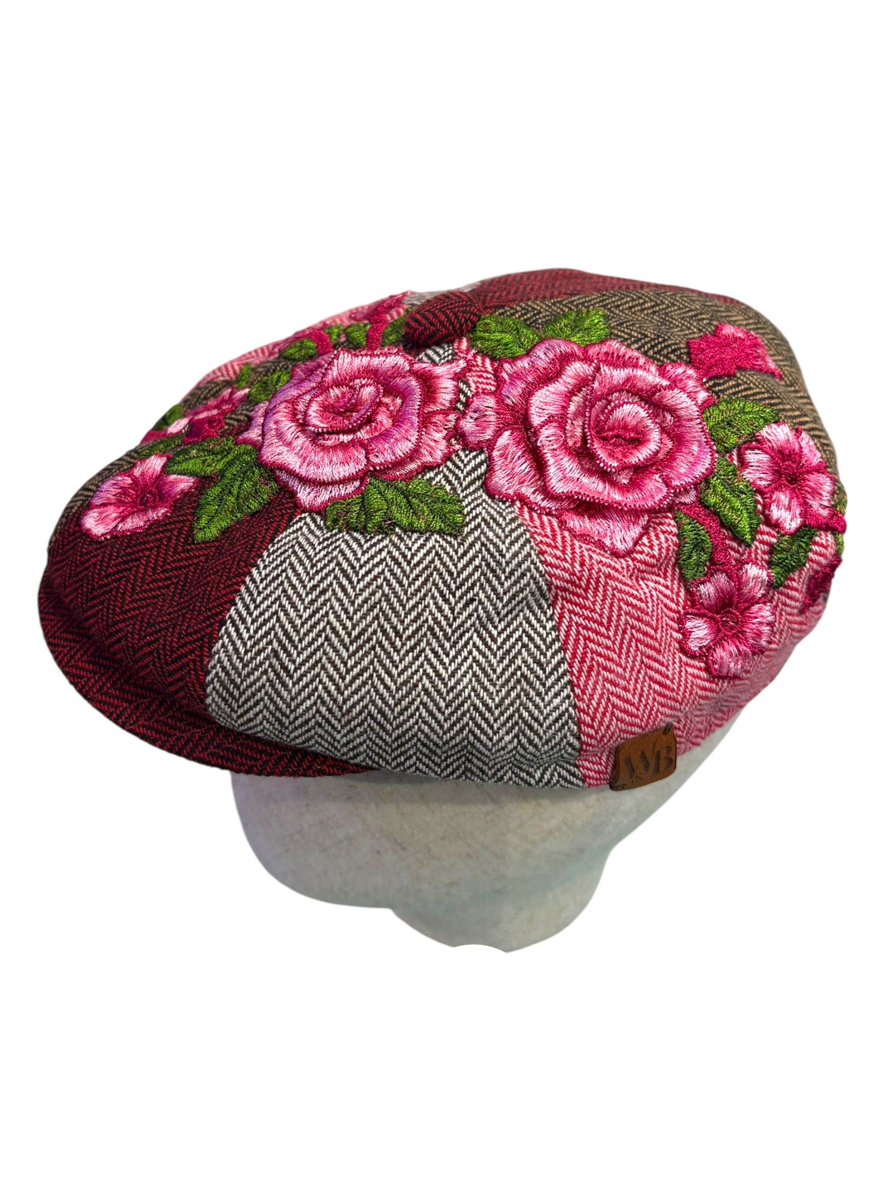A W&B limited Edition Baker Boy Cap made in 100% tweed or tartan scottish wool with a French Embroidery