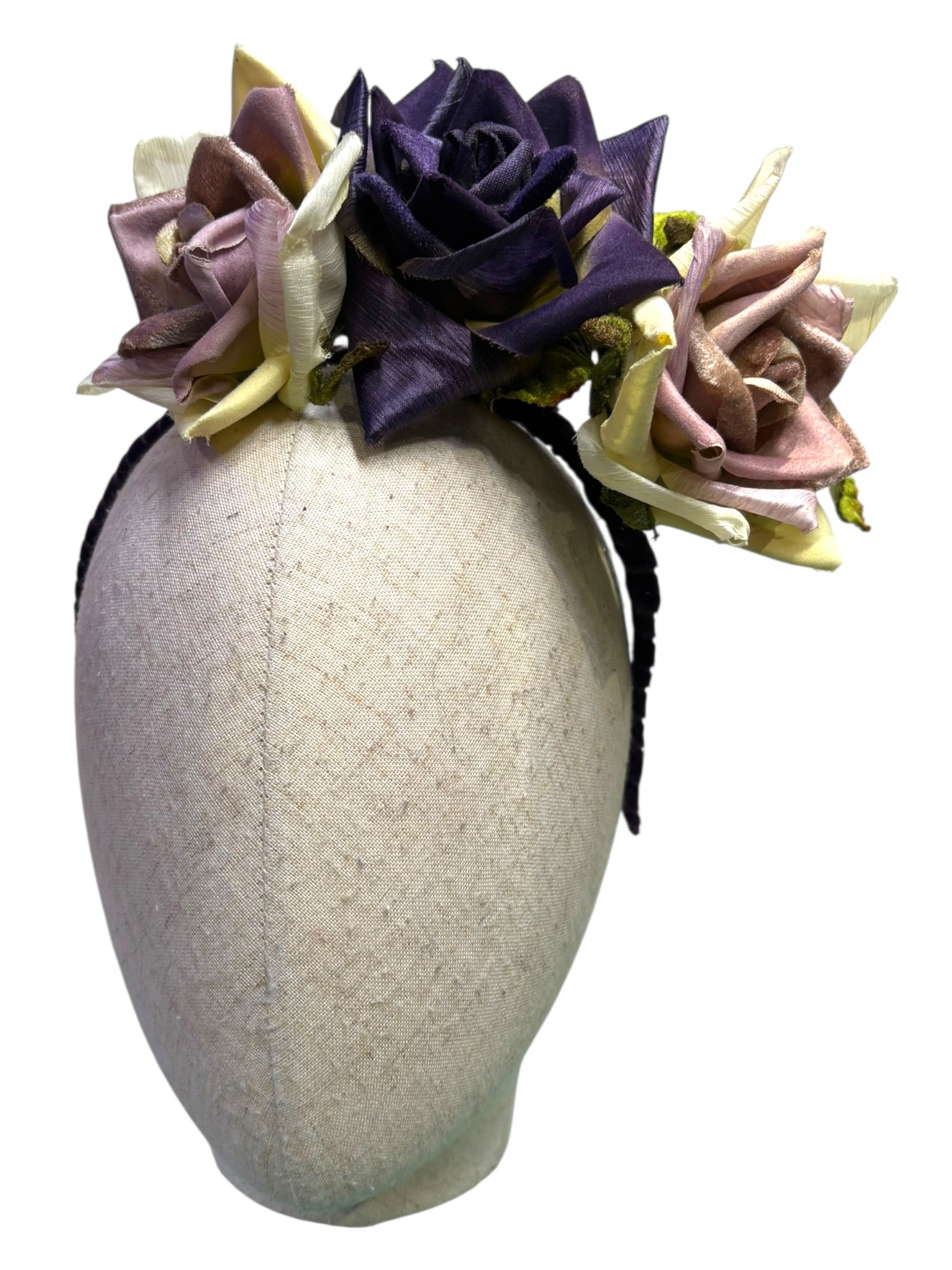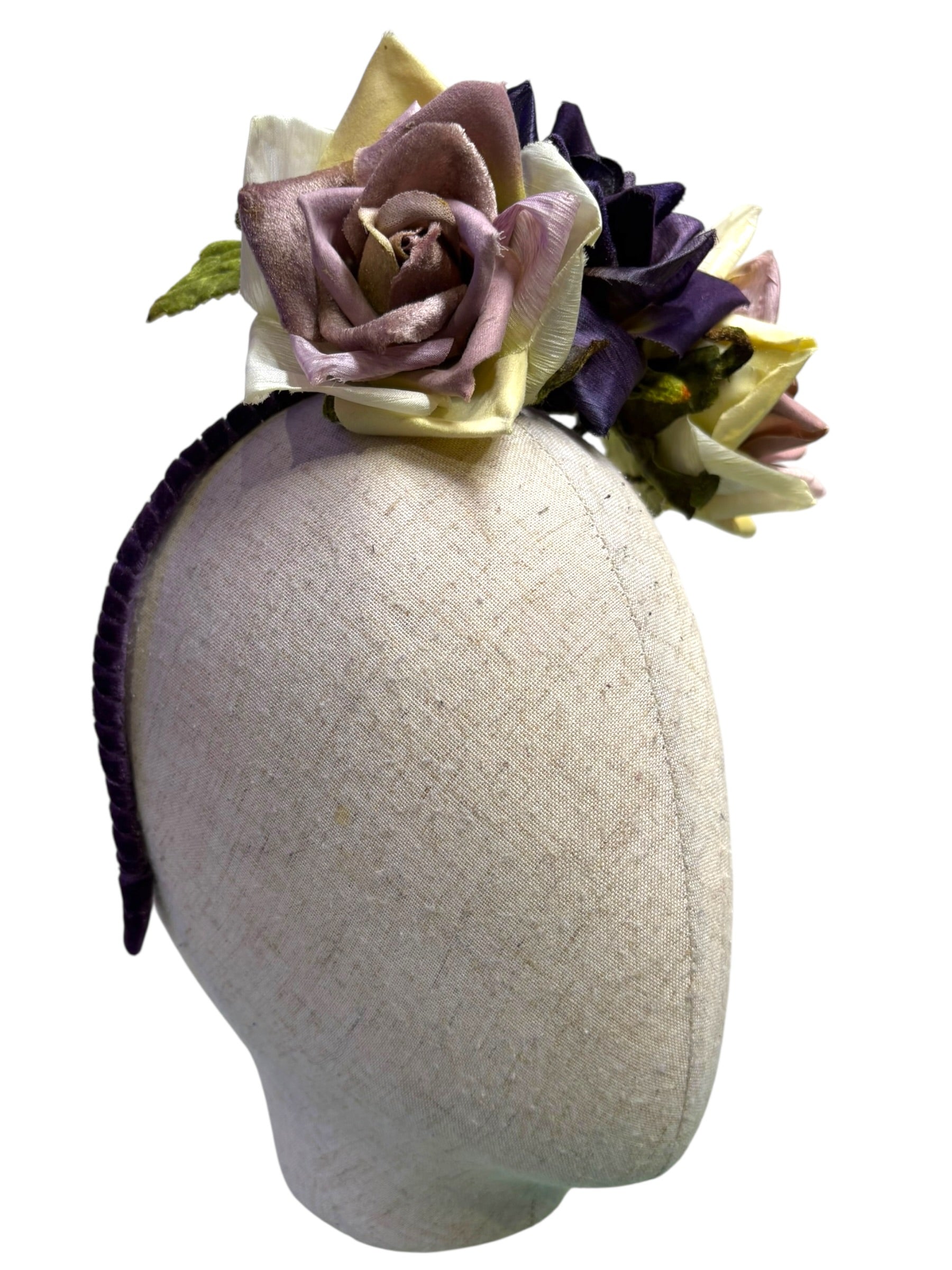 A W&B Berisford velvet headband made and with 70s vintage velvet flowers