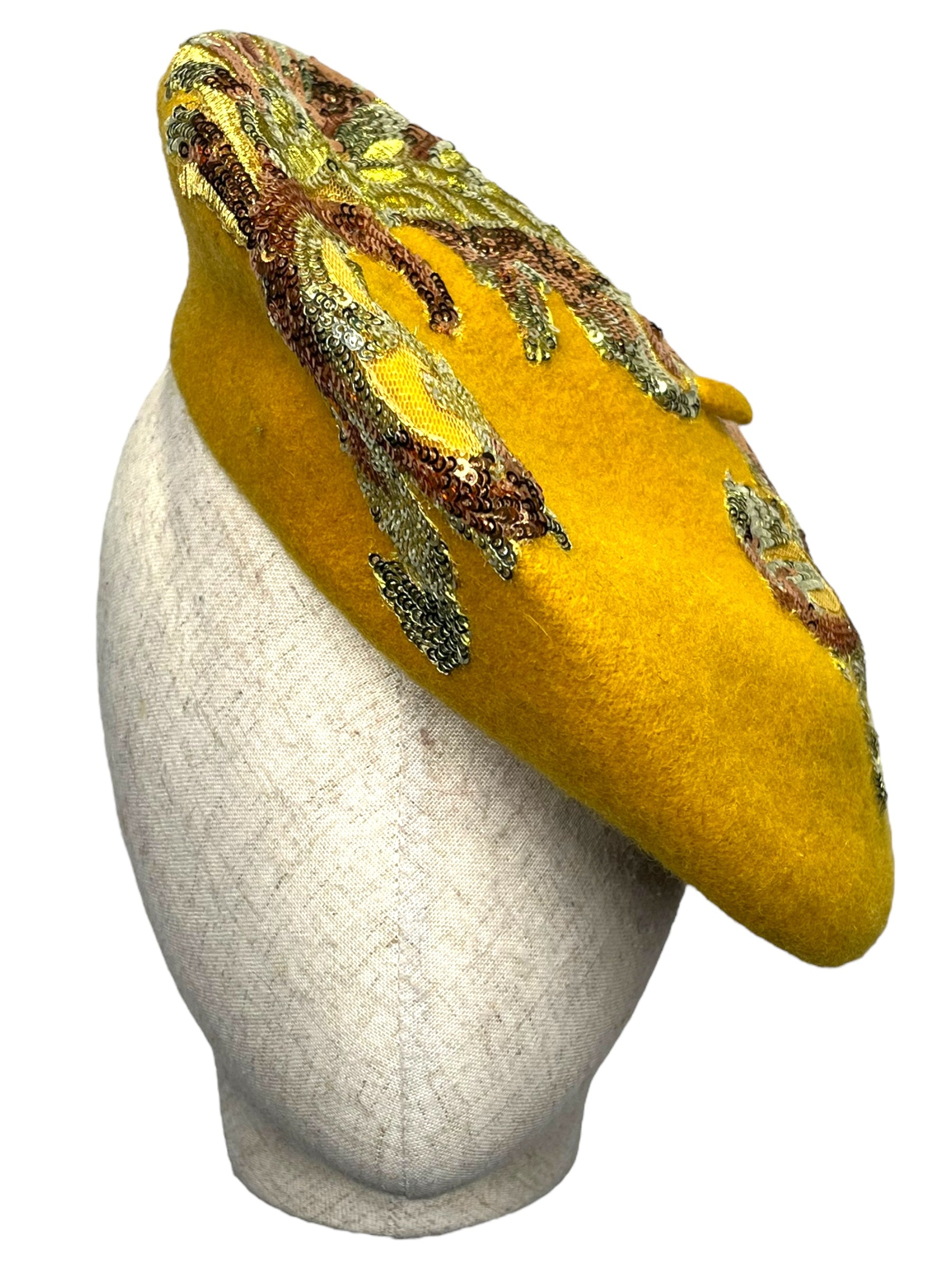 From the volcanic depths of my imagination and using a 100% pure merino wool, I decorate them with an exuberant combination of trimmings-beads or whatever takes my fantasy and just enjoy the blast of creativity and fun.