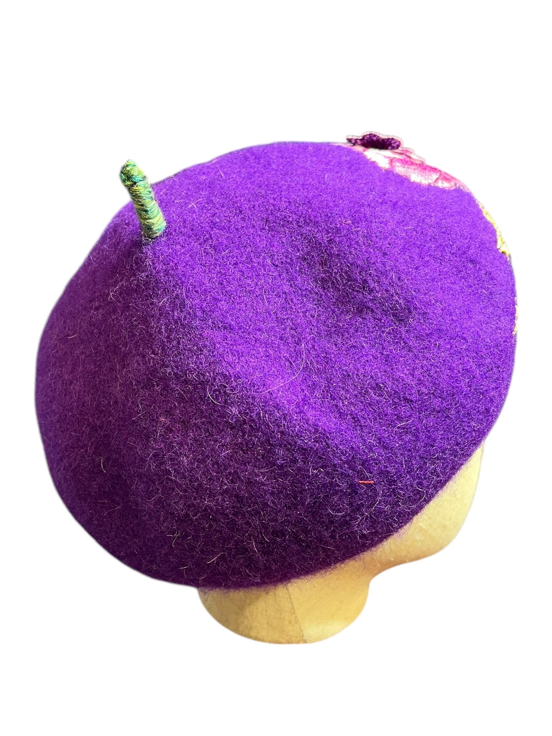 From the volcanic depths of my imagination and using a 100% pure merino wool, I decorate them with an exuberant combination of trimmings-beads, French Silk Lace or whatever takes my fantasy and just enjoy the blast of creativity and fun.