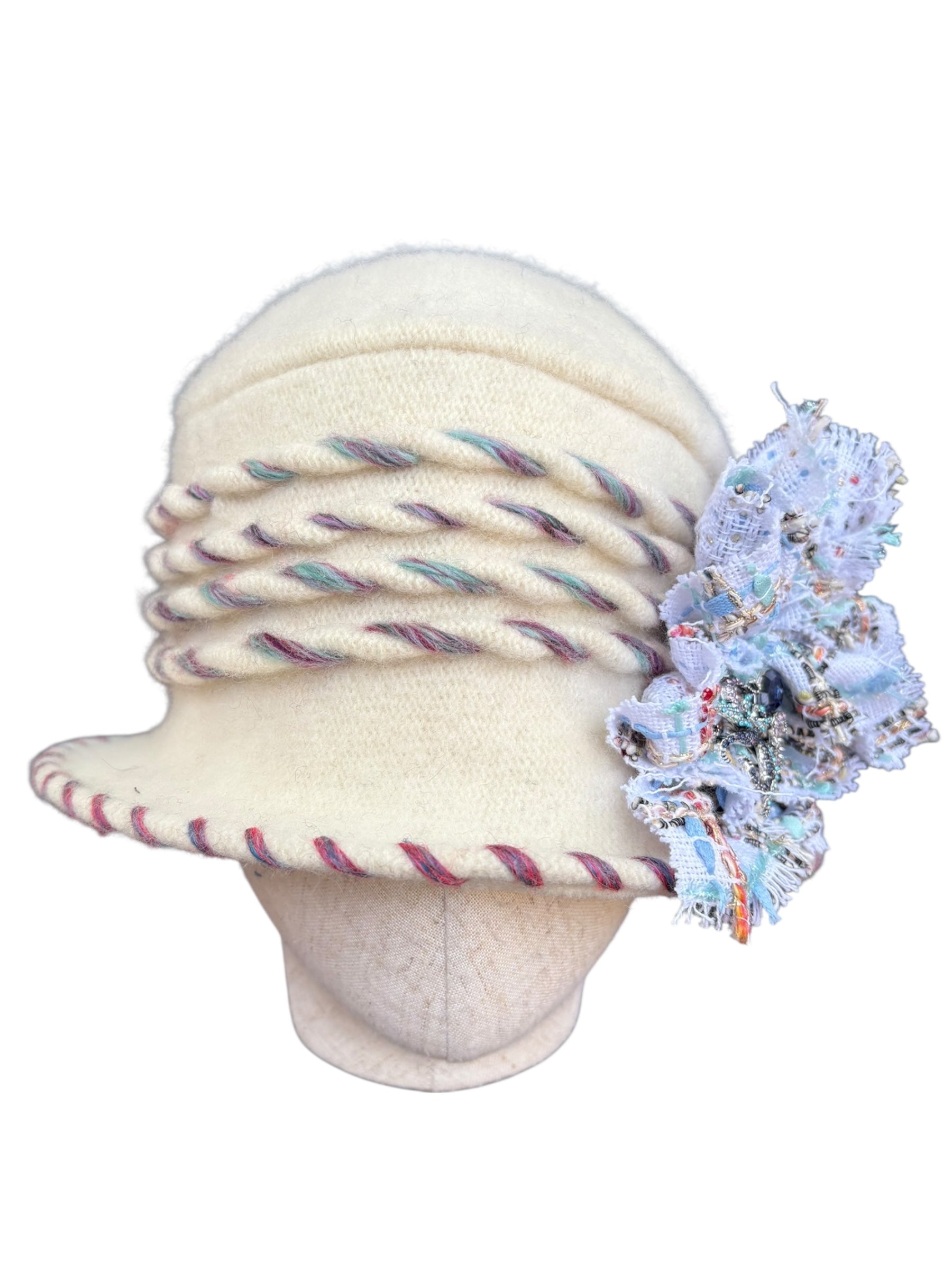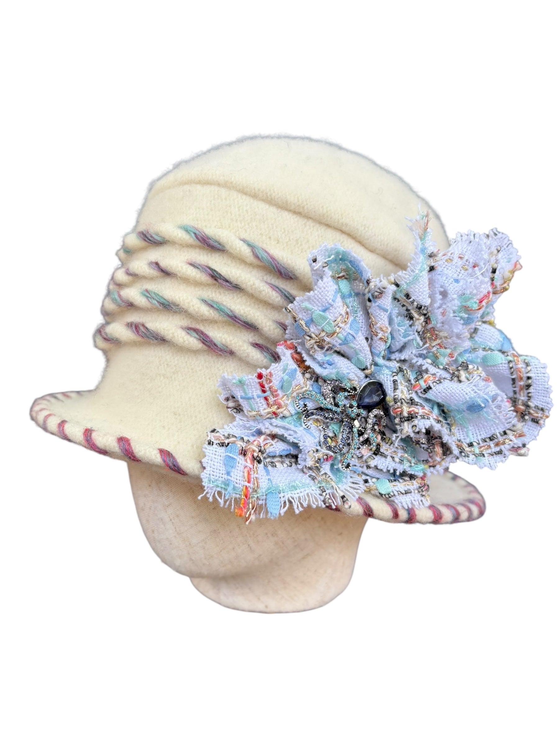To care for your unique Madame Dippy cloche, we recommend a hand wash and then towel it dry, like a delicate jumper. Let it dry naturally in the warm environment of your home away from sources of heat, such as radiators.