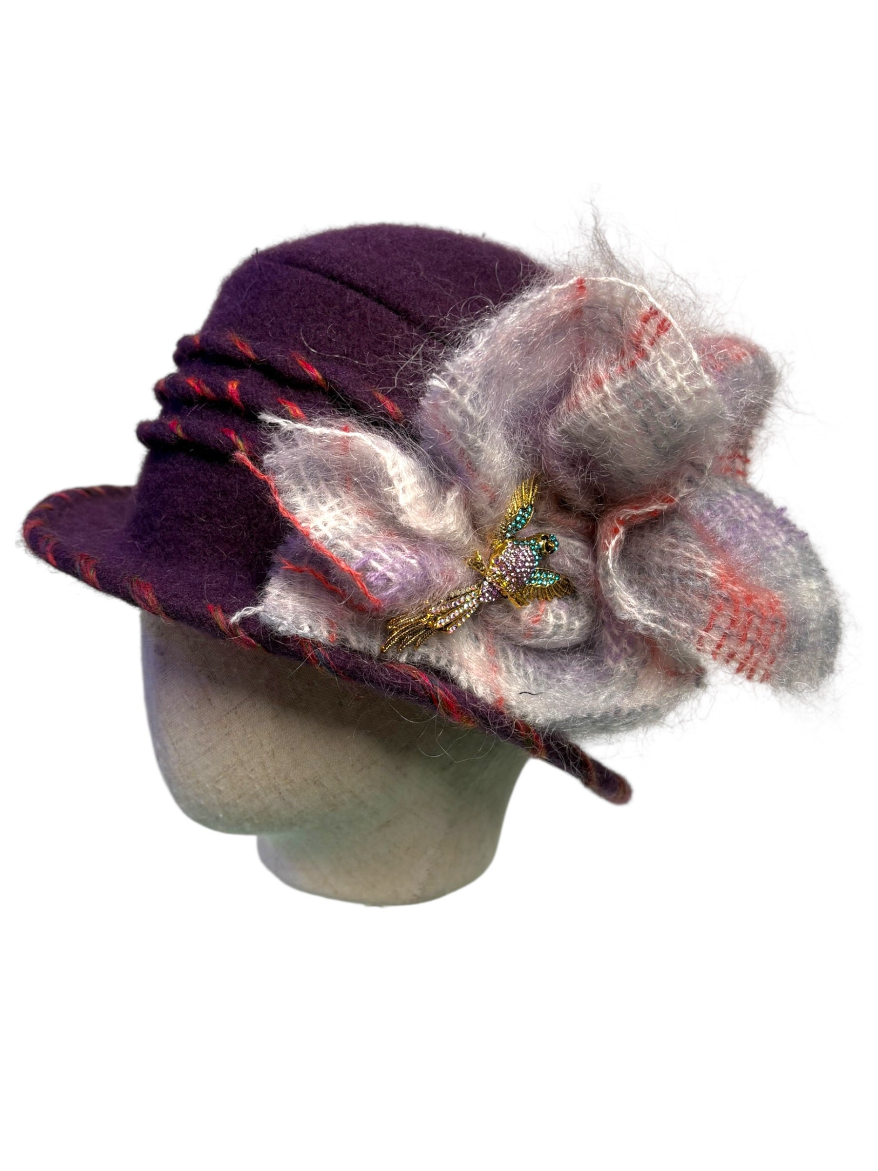 To care for your unique Madame Dippy cloche, we recommend a hand wash and then towel it dry, like a delicate jumper. Let it dry naturally in the warm environment of your home away from sources of heat, such as radiators.