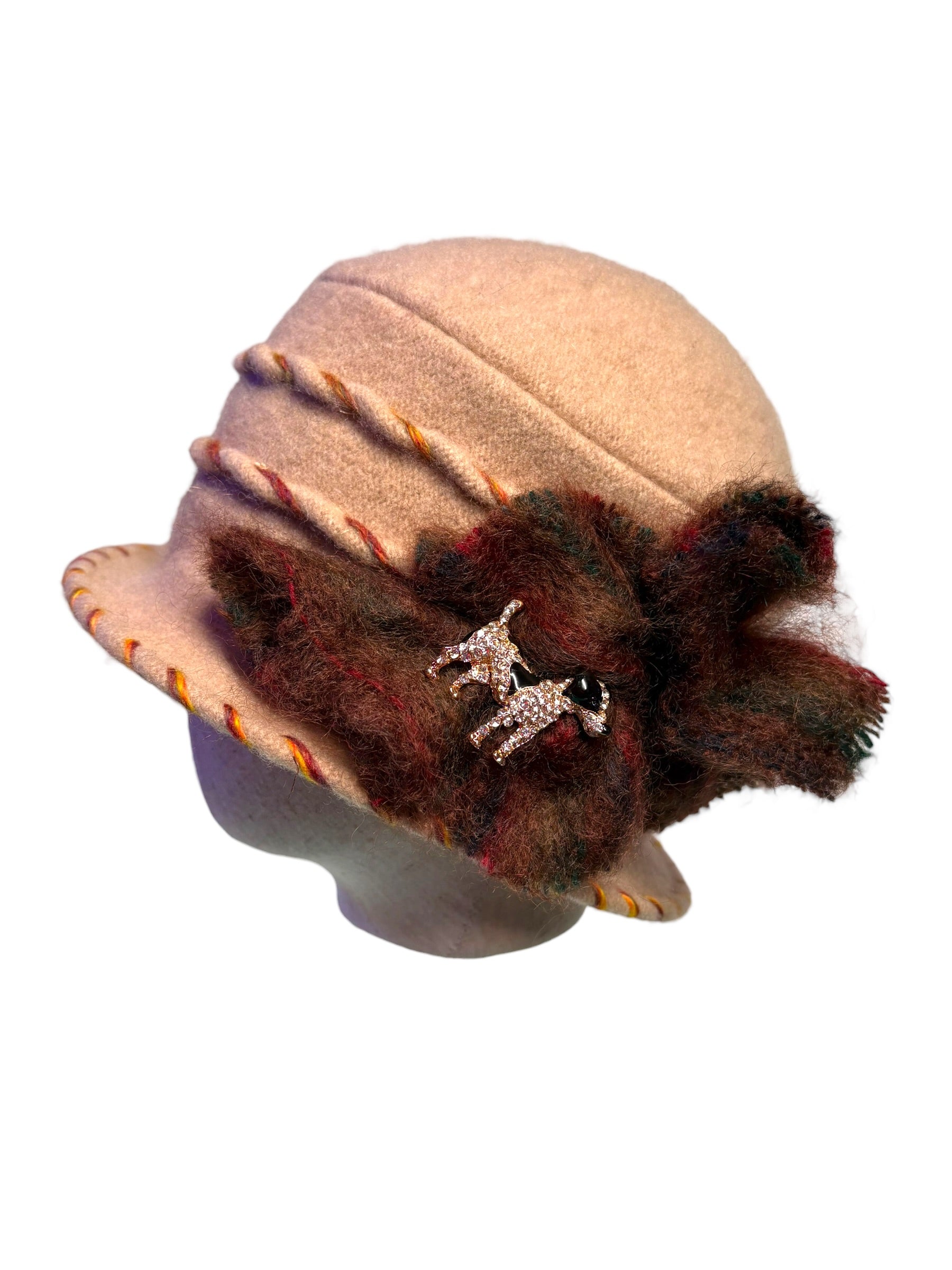 To care for your unique Madame Dippy cloche, we recommend a hand wash and then towel it dry, like a delicate jumper. Let it dry naturally in the warm environment of your home away from sources of heat, such as radiators.