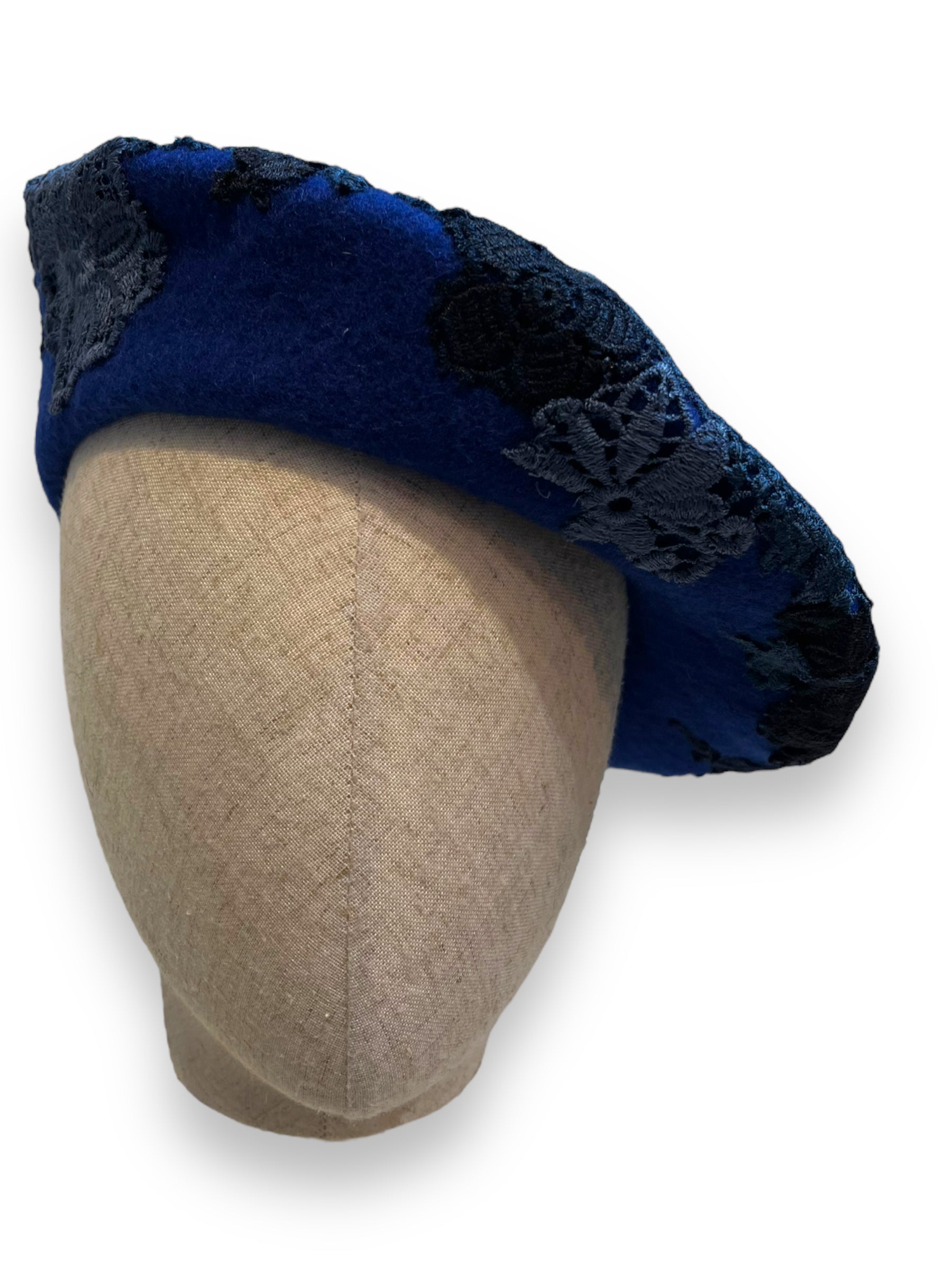 From the volcanic depths of my imagination and using a 100% pure merino wool,  I decorate them with an exuberant combination of trimmings-beads, French Silk Lace or whatever takes my fantasy and just enjoy the blast of creativity and fun.