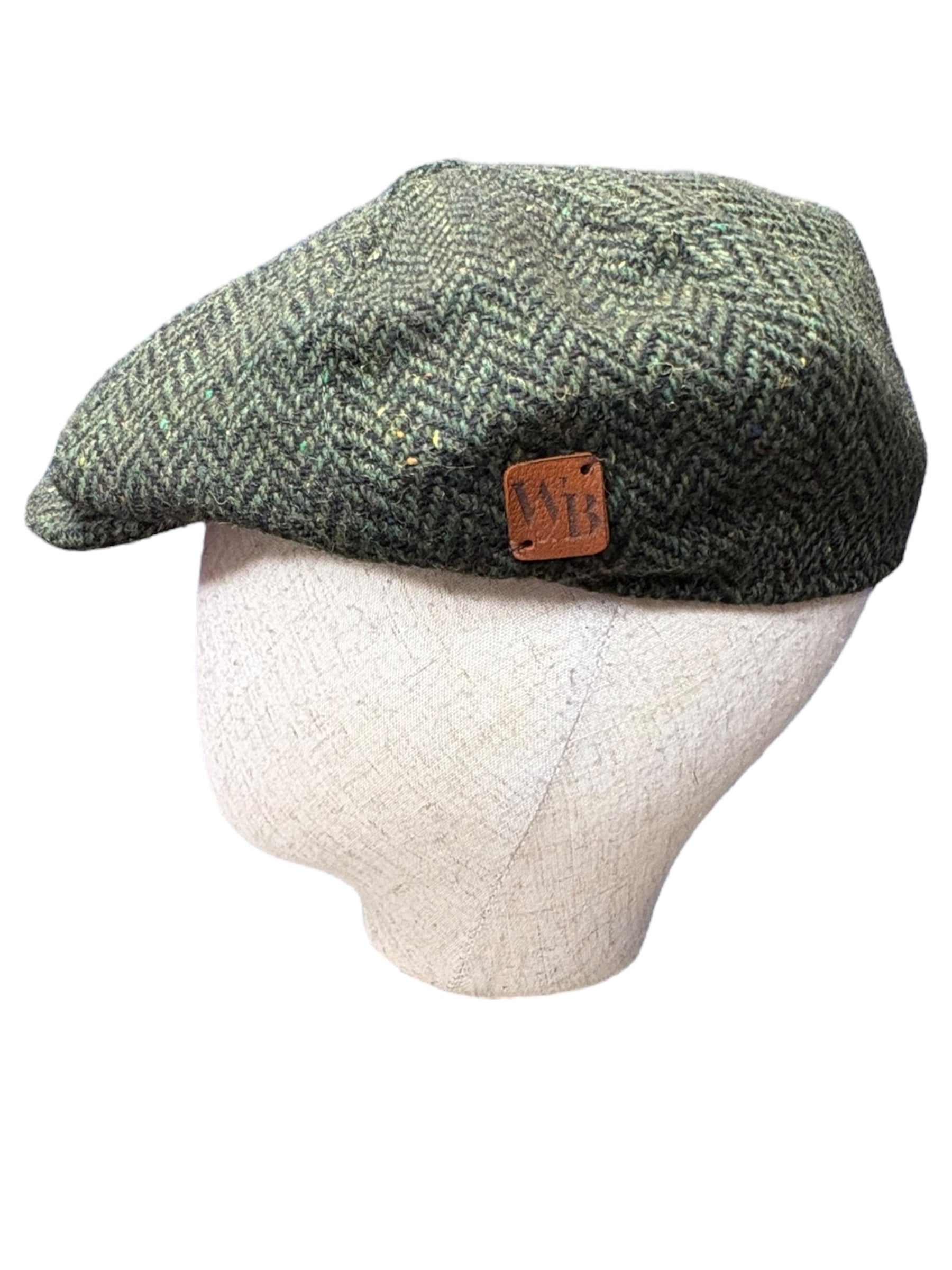 Baker boy cap in 100% pure wool tweed from Scotland - available in two sizes and three colours and with our leather monogram on the side
